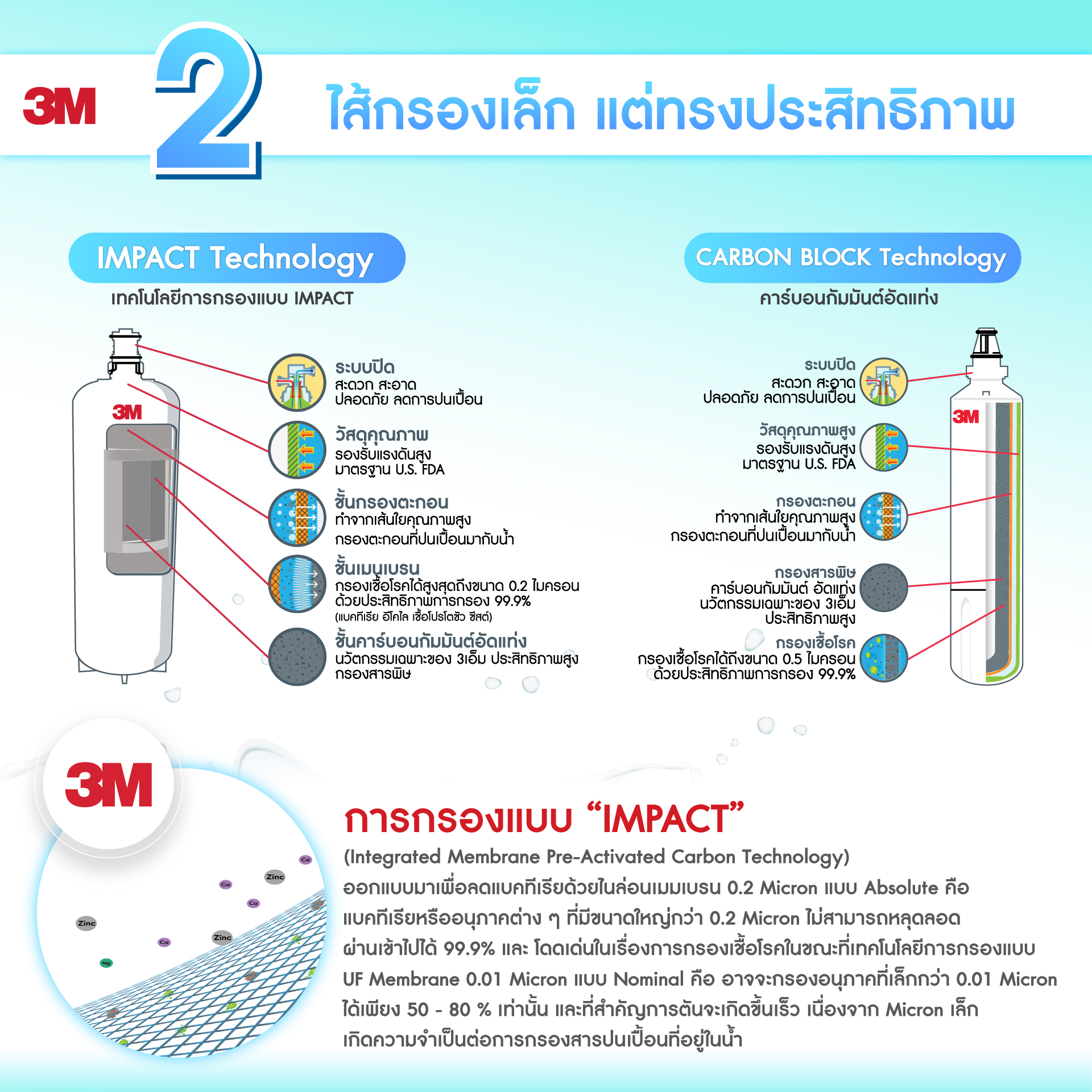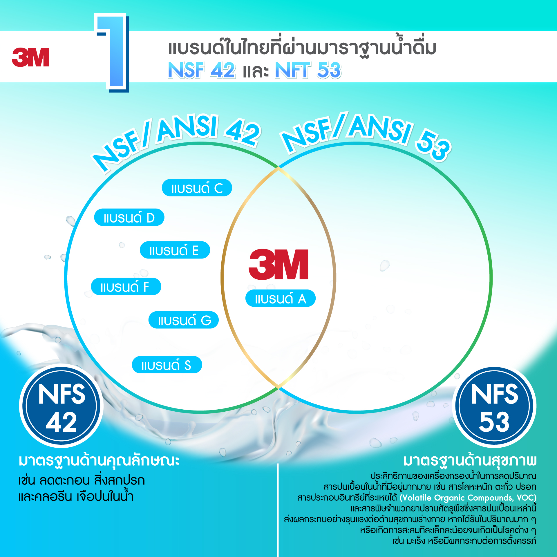 ซึ่งมีความเชี่ยวชาญในการวิจัยพัฒนาออกแบบระบบการกรองน้ำที่ใช้ทั้งในภาคอุตสากรรมอาหารและยามากมายทั่วโลก ซึ่งเทคโนโลยีเฉพาะตัวของ 3M ด้วยไส้กรองเมมเบรนแบบพับจีบและคาร์บอนบล็อคที่สามารถกรองเชื้อโรคและสารพิษต่าง ๆ ที่ปะปนมากับน้ำ ทำให้ได้น้ำสะอาดที่เหมาะสำหรับผู้บริโภคน้ำในภาคครัวเรือน 3M ไม่เพียงคำนึงถึงความสะอาดปลอดภัยแต่ยังง่ายต่อผู้ใช้งาน ด้วยขนาดที่กระทัดรัดเล็กแต่ประสิทธิภาพการกรองสูงเมื่อเทียบกับการกรองในรูปแบบอื่นที่ขนาดใหญ่กว่า เพราะรองรับการกรองครบจบหลายขั้นตอนในไส้กรองเพียงหนึ่งเดียวเท่านั้น