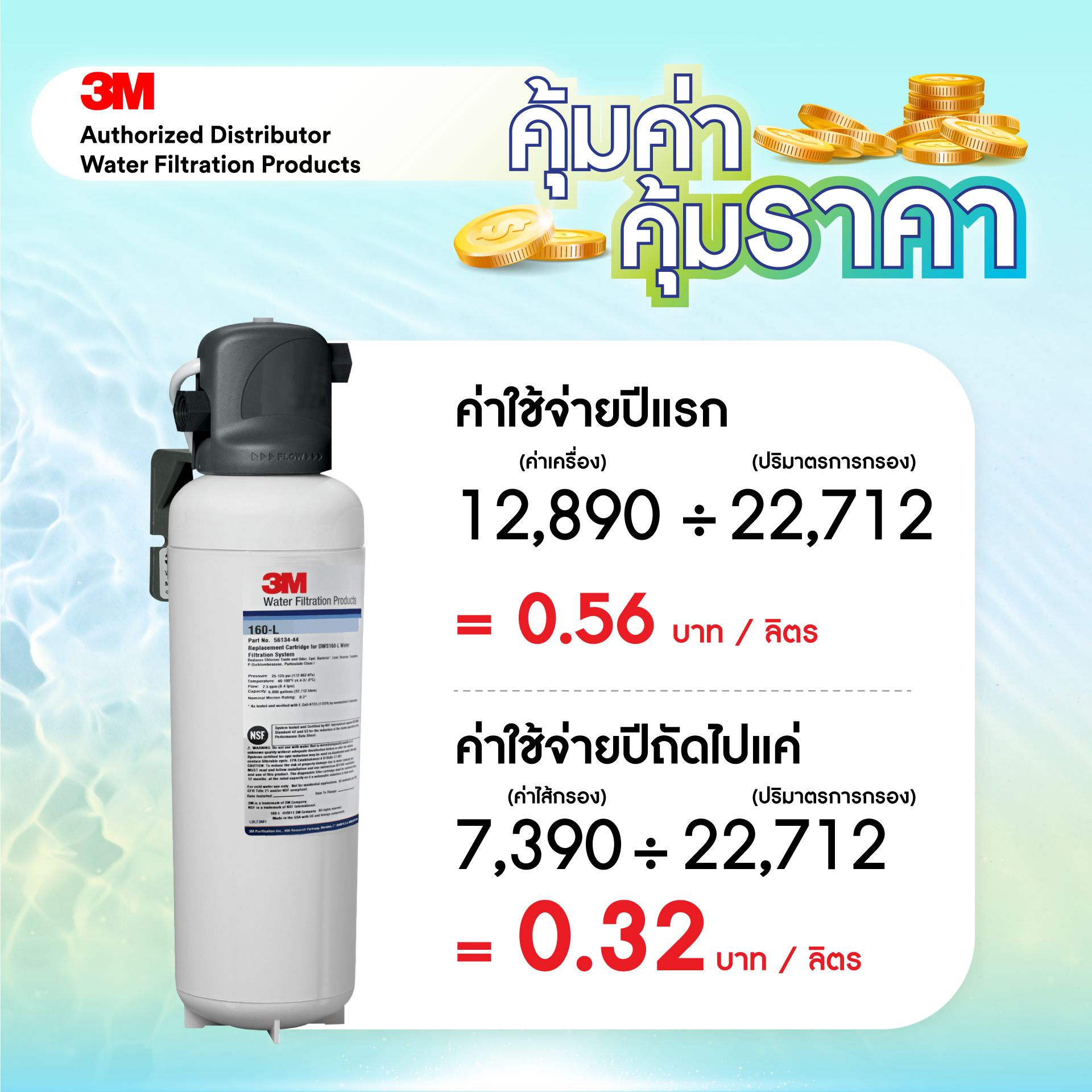 ยกตัวอย่าง 3Mเครื่องกรองน้ำ มีความสามารถในการกรองและได้ปริมาณน้ำสูงตกลิตรละแค่ 0.56 บาท และปีถัดไปแค่ 0.32 บาท เท่านั้น โดยเราสามารถนำ (ราคาเครื่องและไส้กรอง หาร ความสามารถในการกรองของเครื่องกรองน้ำแต่ละรุ่น(ลิตร) แค่นี้เราก็จะได้ค่ากรองของน้ำต่อลิตรเพื่อคำนวณว่าเครื่องน้ำแบรนด์ไหนให้ทั้งความปลอดภัยและให้ความคุ้มค่ากับเราบ้าง