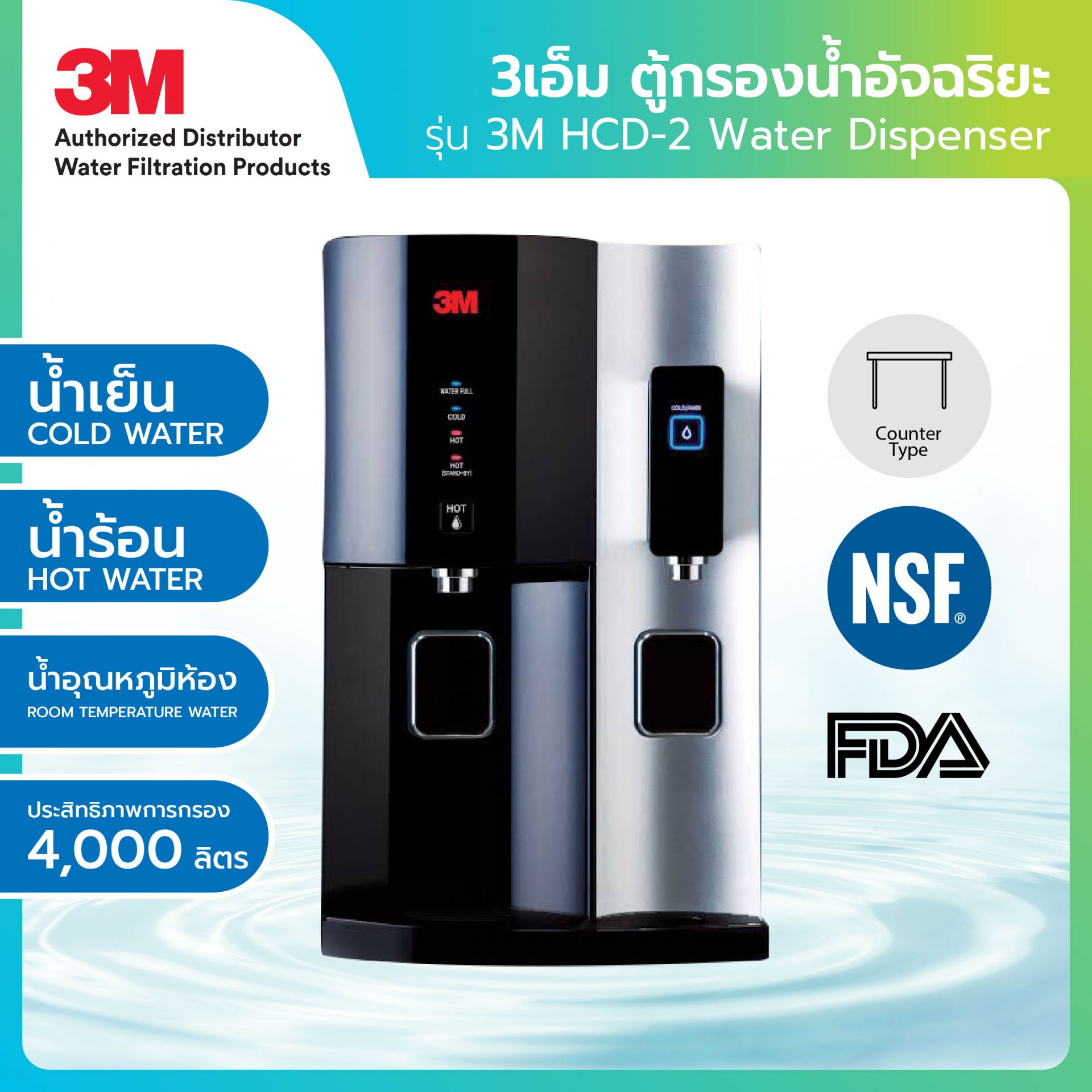 5. 3M เครื่องกรองน้ำร้อน-เย็น-อุณหภูมิห้อง รุ่น HCD-2 Water Dispenser