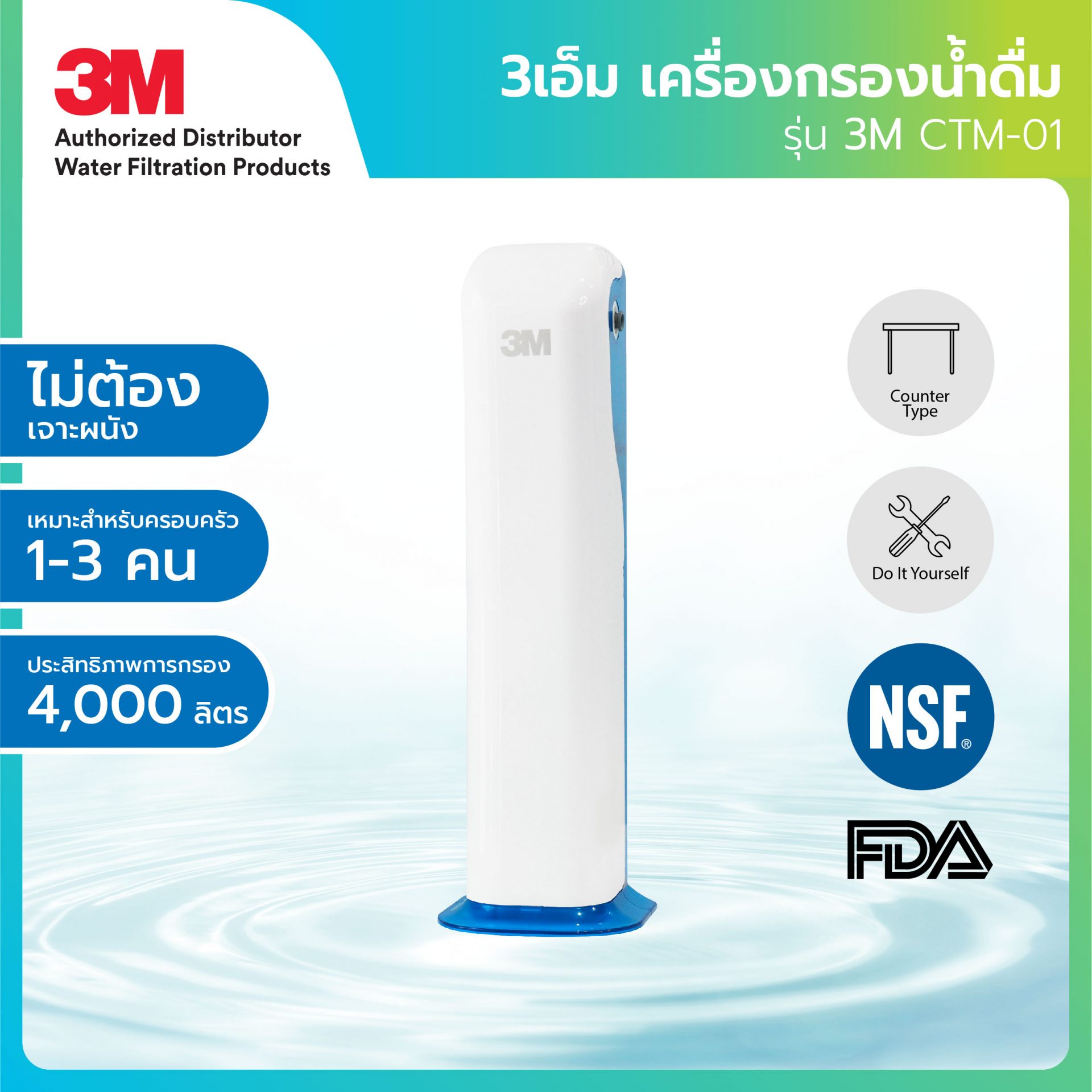 4. 3M เครื่องกรองน้ำตั้งโต๊ะหรือยึดผนัง รุ่น CTM-01