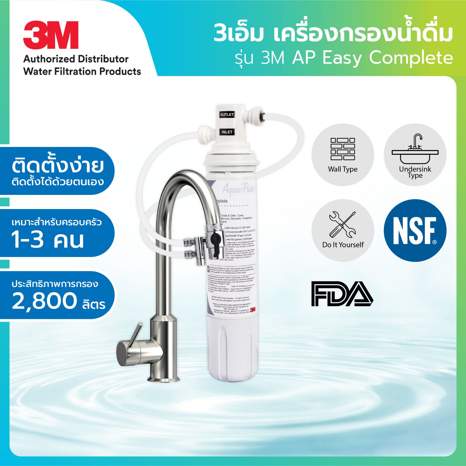 1. 3M เครื่องกรองน้ำ รุ่น ติดตั้งง่าย DIY (AP easy complete)